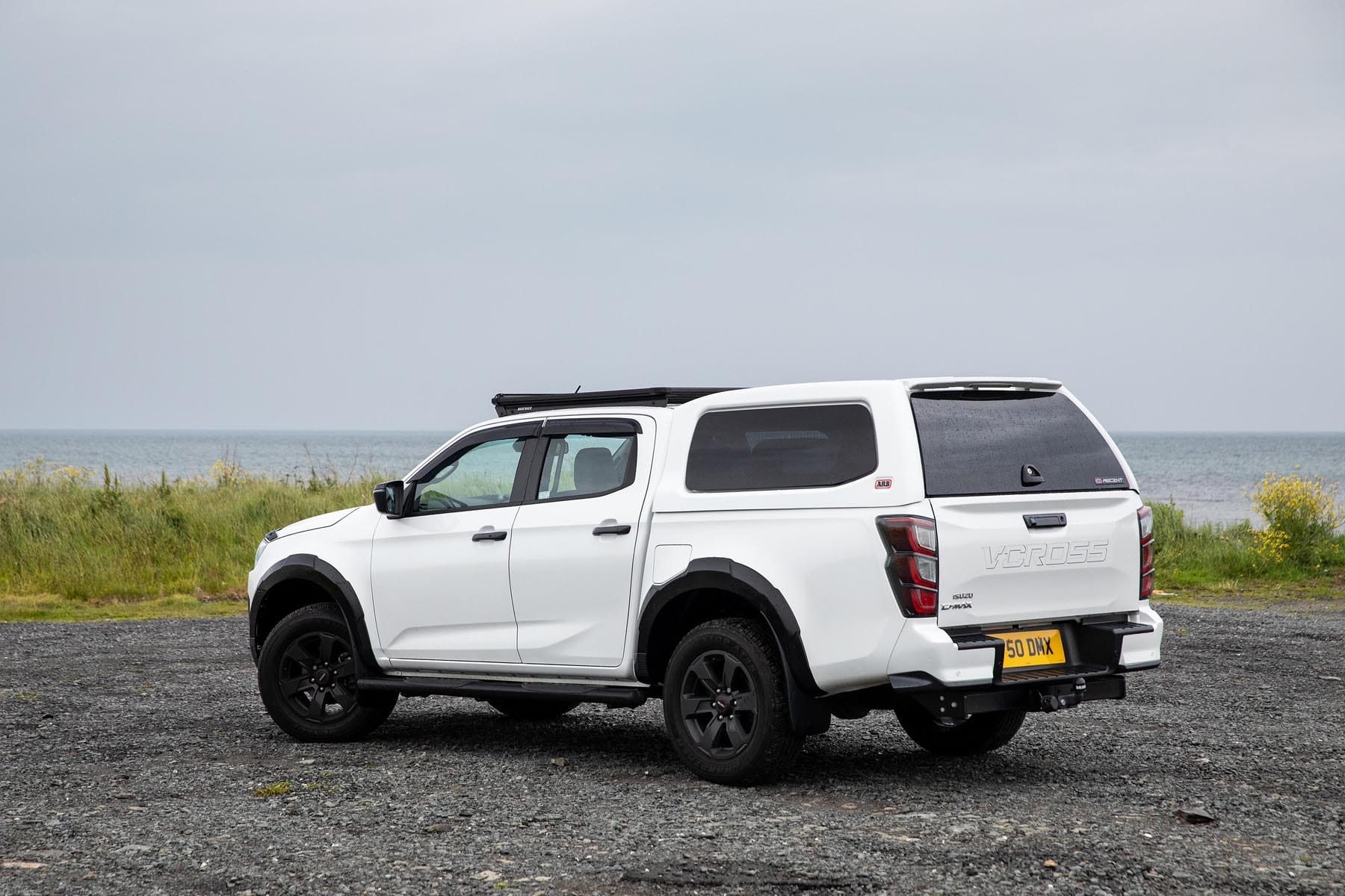 This Isuzu D‑Max V‑Cross came exceptionally well equipped, fitted with a comprehensive range of premium accessories. These included an ARB Ascent Hardtop Gullwing Canopy (£3,097.50 fitted, excl. VAT), a Carpet BedRug (£637.50 fitted, excl. VAT), Black Steel Side Bars with Steps (£625.33 fitted, excl. VAT), a Tow Bar (£371.00 fitted, excl. VAT), and 13‑pin towing electrics (£234.83 fitted, excl. VAT). Additional enhancements comprised a Bonnet Protector (£172.08 fitted, excl. VAT), Front and Rear Door Visors (£136.08 fitted, excl. VAT), an ARB Baserack with Cab Mount Kit (£1,035.00 fitted, excl. VAT), and an impressively bright Lazer Lamp Roof Bar Kit (£820.00 fitted, excl. VAT).