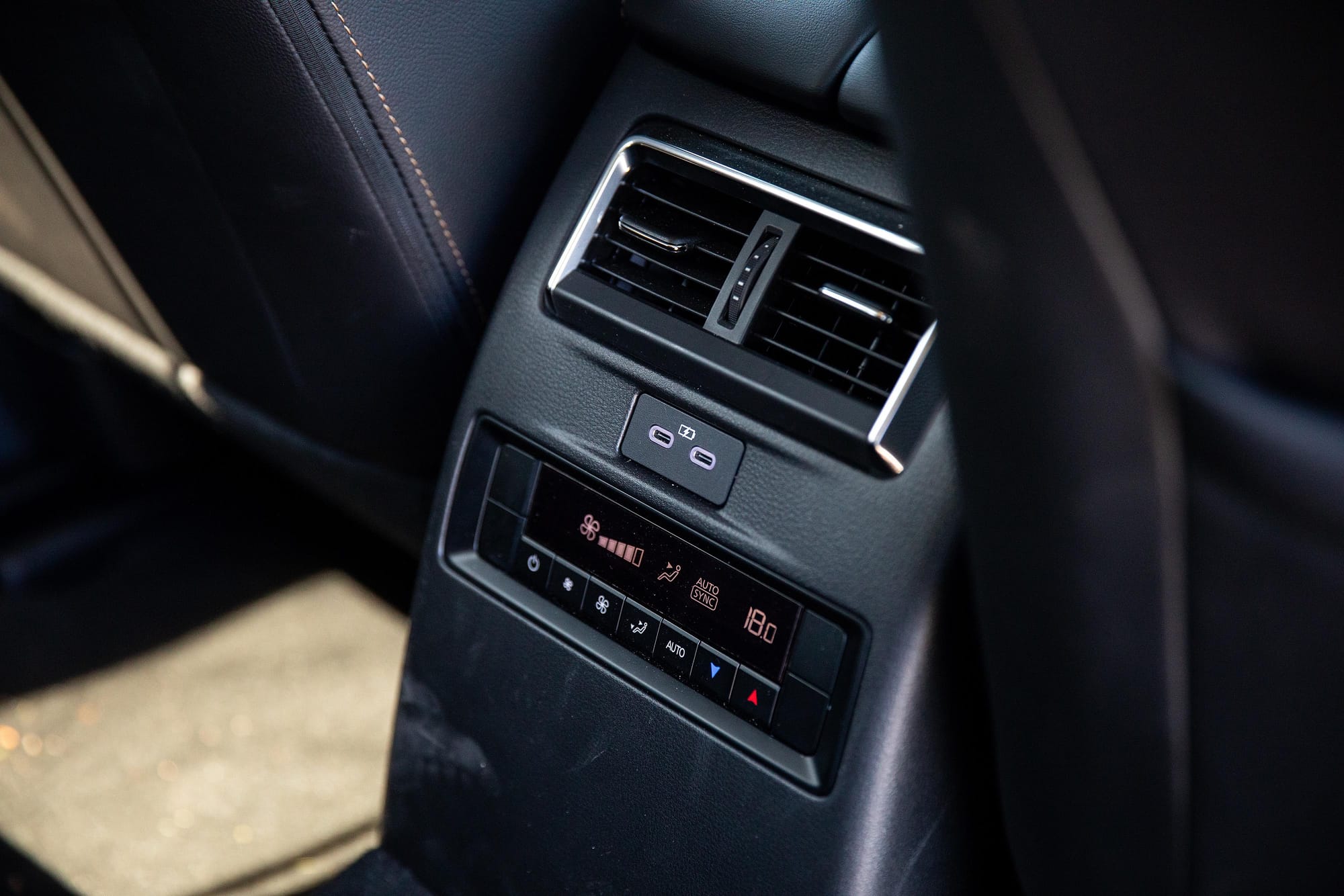 - Black leather upholstery